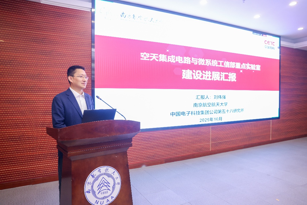 魏敬和代表实验室共建单位致辞。他强调,空天领域是国家战略安全和科技竞争的核心阵地,集成电路与微系统作为贯穿其中的“神经”与“脊梁”,二者的结合彰显了前瞻性布局与时代担当。作为共建单位,中国电科58所深感责任重大,将继续秉持开放、协同、创新、共享的理念,全力支持实验室建设。未来期待与南航进一步深化合作,共同凝练重大科学问题,组建高水平科研团队,推动创新成果转化,为我国集成电路领域的自主可控与跨越发展贡献力量。
